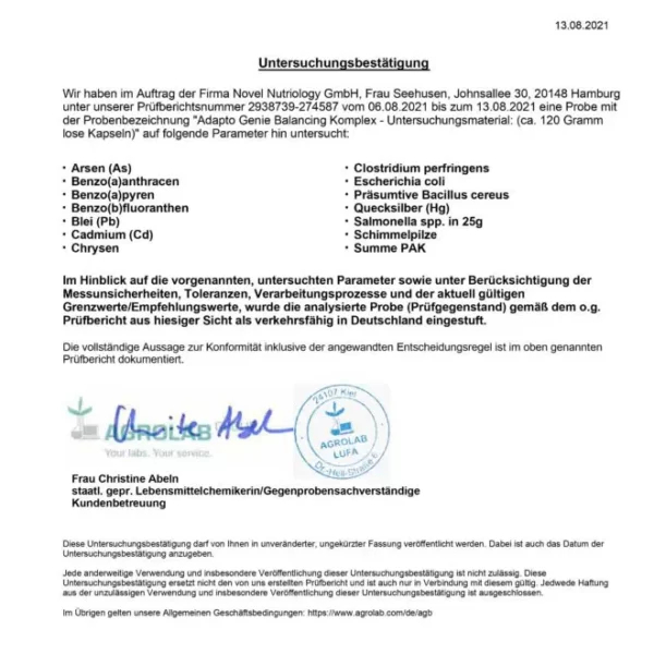 ADAPTO GENIE je izključno rastlinsko organsko prehransko dopolnilo. Dnevni odmerek vsebuje tri inovativne organske rastline v kliničnem odmerku, vdelane v naravni kompleks vitamina B: KSM-66 Ashwagandha®, Extramel® organski izvleček melone in Safr’Inside™ organski izvleček žafrana.