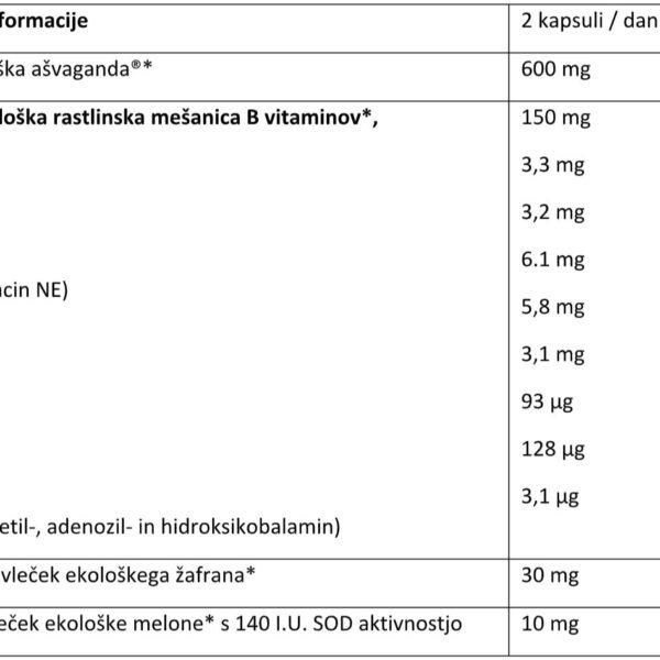 💚 Kombinacija inovativnih, klinično dokazanih rastlinskih organskih učinkovin in naravnega organskega kompleksa vitaminov B